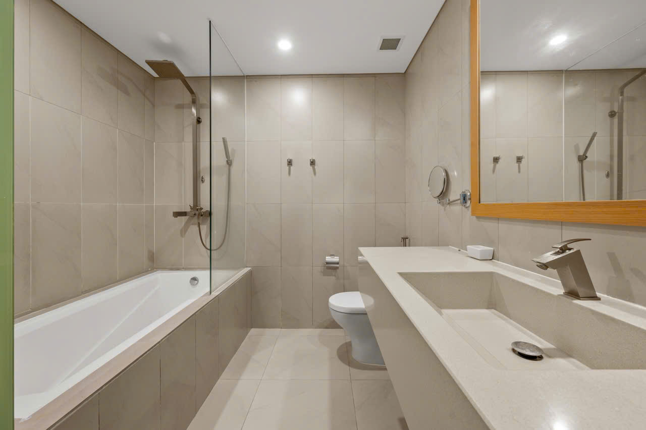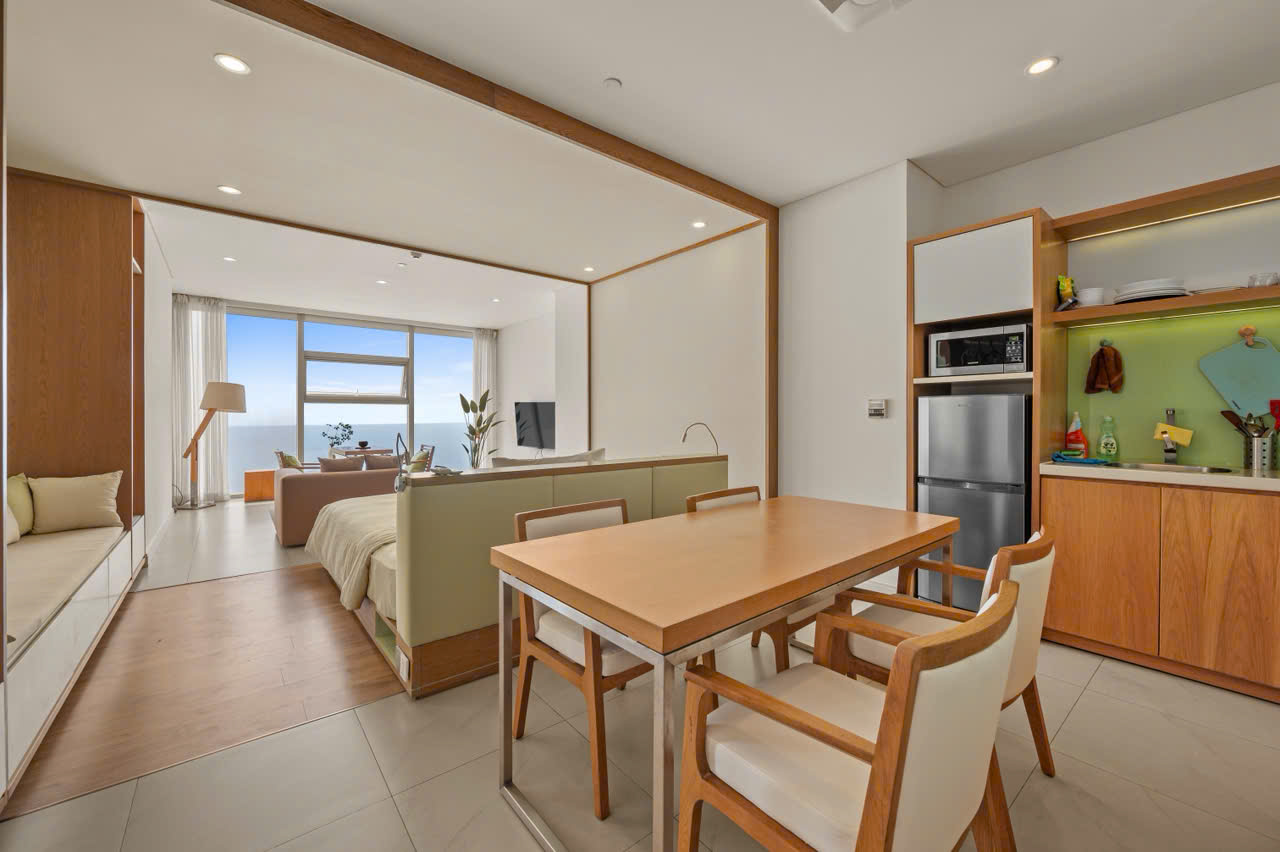 Võ Nguyên Giáp 도로에 위치해 있으며, 탁 트인 바다 전망과 함께 고층에서의 멋진 뷰를 제공합니다. 객실은 이른 아침 햇살이 들어오는 방향에 자리하고 있습니다. 침대 구성: 킹사이즈 침대 1개, 2층 침대 1개 임대 형태: 단기 및 장기 임대 가능 면적: 65m²· 적합한 고객: 소가족, 커플, 비즈니스 여행객 · 편의시설: 인피니티 풀, 5성급 헬스장 & 스파, 객실 청소 서비스, 고속 Wi-Fi, 스마트 TV 임대 요금: 단기 임대: 1박당 3.500.000 (전기세 및 청소비 포함) 주간 임대: 주당 9.500.000 (전기세 및 청소비 포함) 3개월 미만 임대: 월 29.500.000 (전기세 및 청소비 포함) 장기 임대(3개월 이상): 월 21.500.000 (전기세 및 청소비 미포함)청소 서비스 정책: 단기 임대: 2일에 1회 청소 장기 임대: 3일에 1회 청소 |