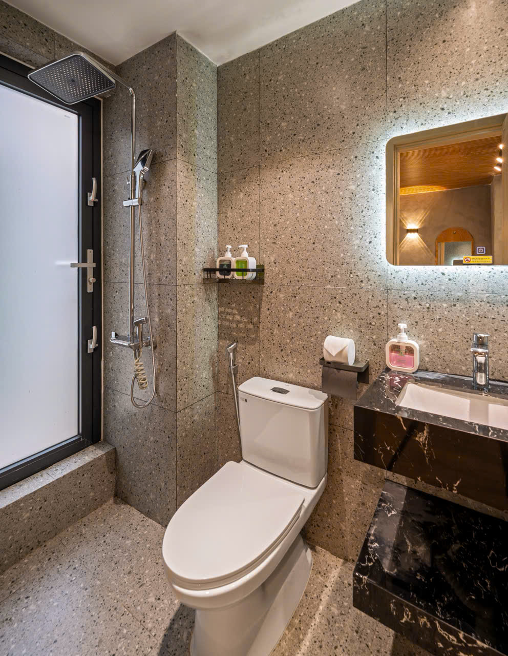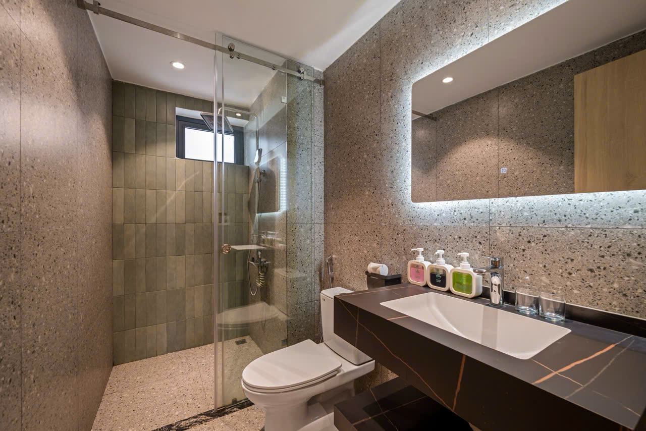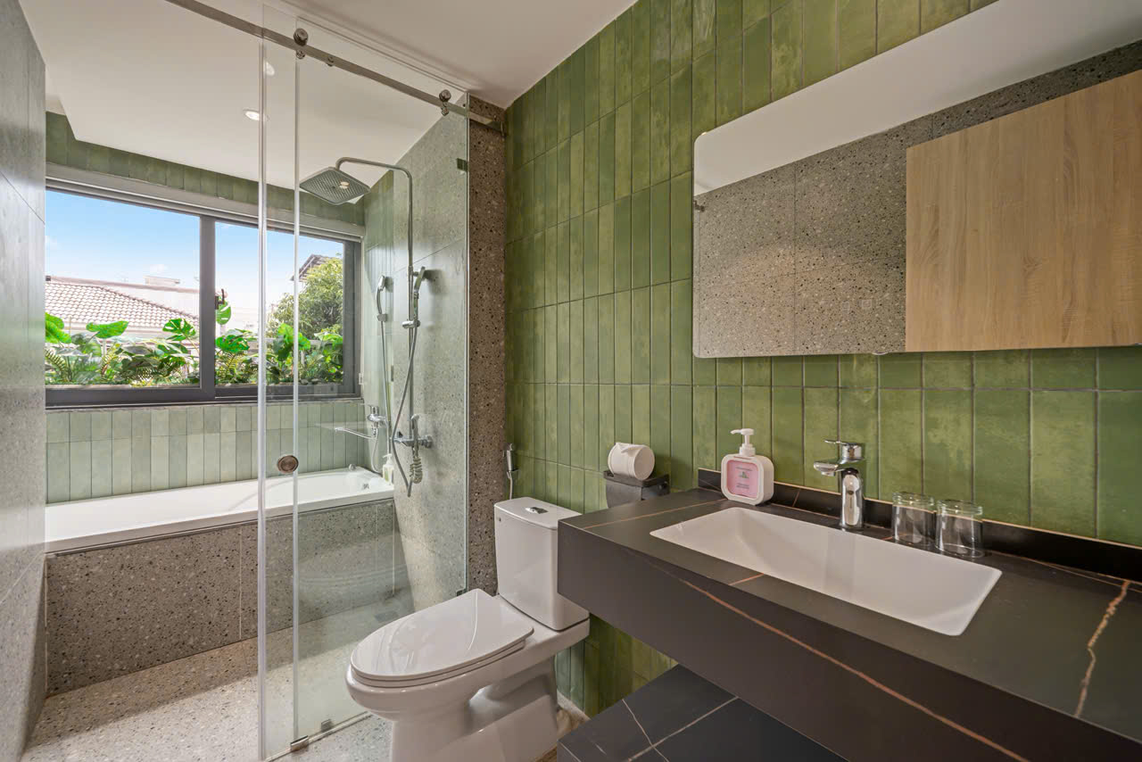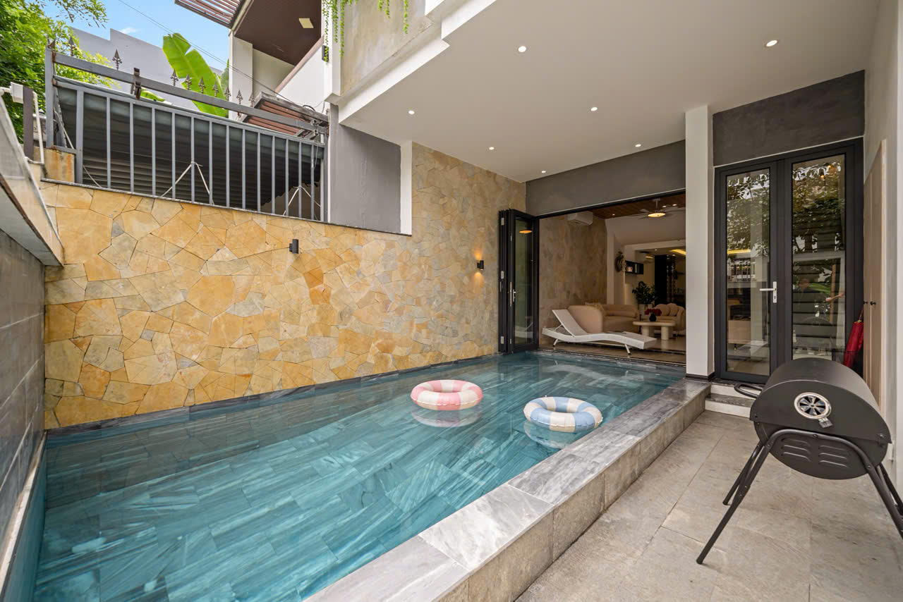 · 주소: 징로이(Trịnh Lỗi) - 남비엣아(Nam Việt Á) - 다낭 오행산 (Ngũ Hành Sơn) 지역 내 남비엣아 주거단지에 위치 - 박미안(Bắc Mỹ An) 해변에서 2km, 논누억(Non Nước) 해변에서 2.2km 거리 - 다낭 국제공항에서 4km 거리 · 빌라 면적: 100㎡, 총 3층 구조 시설 안내: 넓은 거실 구비: 가족이나 친구 모임에 적합하며, 식사 및 파티 공간으로 활용 가능. 대형 소파, 평면 TV, 스피커 시스템 완비. 침실: 4개, 대형 침대 5개, 욕실 5개 모두 개별 설치. 에어컨 완비. 마스터룸에는 욕조, 유리장, 금고 구비. 주방: 인덕션, 냉장고, 오븐, 식기세척기, 대형 식탁 등 완비. 야외 전용 수영장 보유. BBQ 그릴 사용 가능. 수건 및 침구류 구비. 24시간 상주 관리인(하우스키퍼) 서비스 제공.