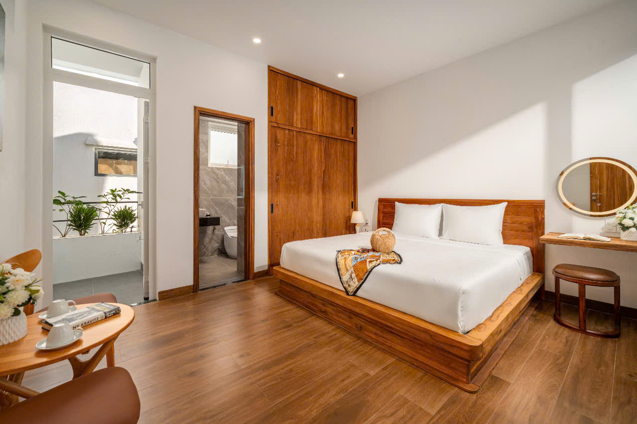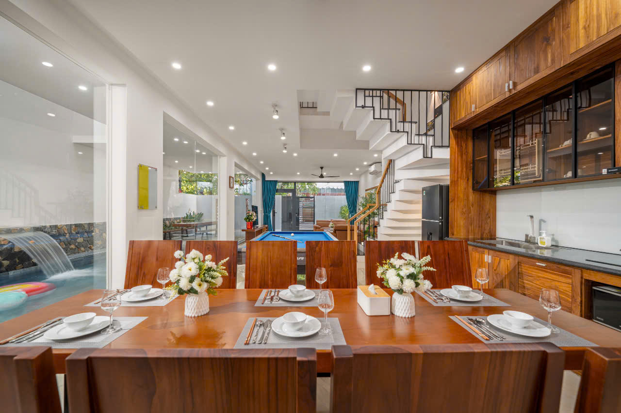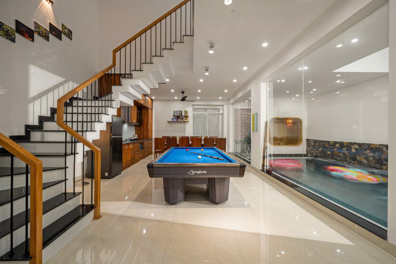 • 위치: Sơn Trà, Đà Nẵng. 도심 중심에 위치해 있으며, 카페·레스토랑까지 도보 1분, 미케 해변까지 도보 5분 거리. • 객실 수: 8개 객실 / 총 9개 침대 (2m×2m 침대 7개, 1.6m×2m 침대 2개) • 수용 인원: 성인 18명 • 편의시설: • 넓은 8개 침실, 각 방마다 개별 욕실과 발코니 구비 • 4×10m 규모의 고급 수영장 • 모던하고 고급스러운 인테리어, 스타일과 실용성 모두 갖춘 공간 • 매일 타월 교체 서비스 제공, 편안함 유지 • 개인 사우나 룸 • 당구대, 넓은 BBQ 공간 마련 • 가격: • 평일: 12,500,000동/박 • 주말: 13,500,000동/박