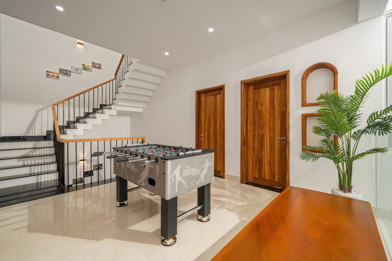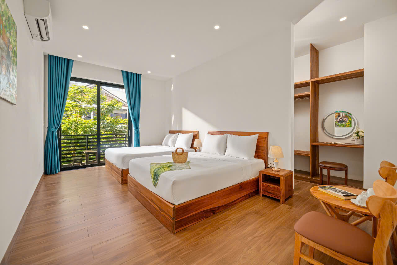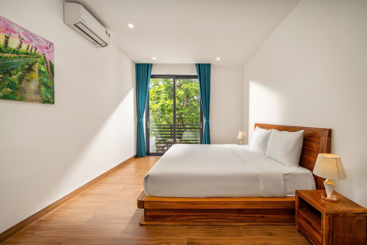 • 위치: Sơn Trà, Đà Nẵng. 도심 중심에 위치해 있으며, 카페·레스토랑까지 도보 1분, 미케 해변까지 도보 5분 거리. • 객실 수: 8개 객실 / 총 9개 침대 (2m×2m 침대 7개, 1.6m×2m 침대 2개) • 수용 인원: 성인 18명 • 편의시설: • 넓은 8개 침실, 각 방마다 개별 욕실과 발코니 구비 • 4×10m 규모의 고급 수영장 • 모던하고 고급스러운 인테리어, 스타일과 실용성 모두 갖춘 공간 • 매일 타월 교체 서비스 제공, 편안함 유지 • 개인 사우나 룸 • 당구대, 넓은 BBQ 공간 마련 • 가격: • 평일: 12,500,000동/박 • 주말: 13,500,000동/박