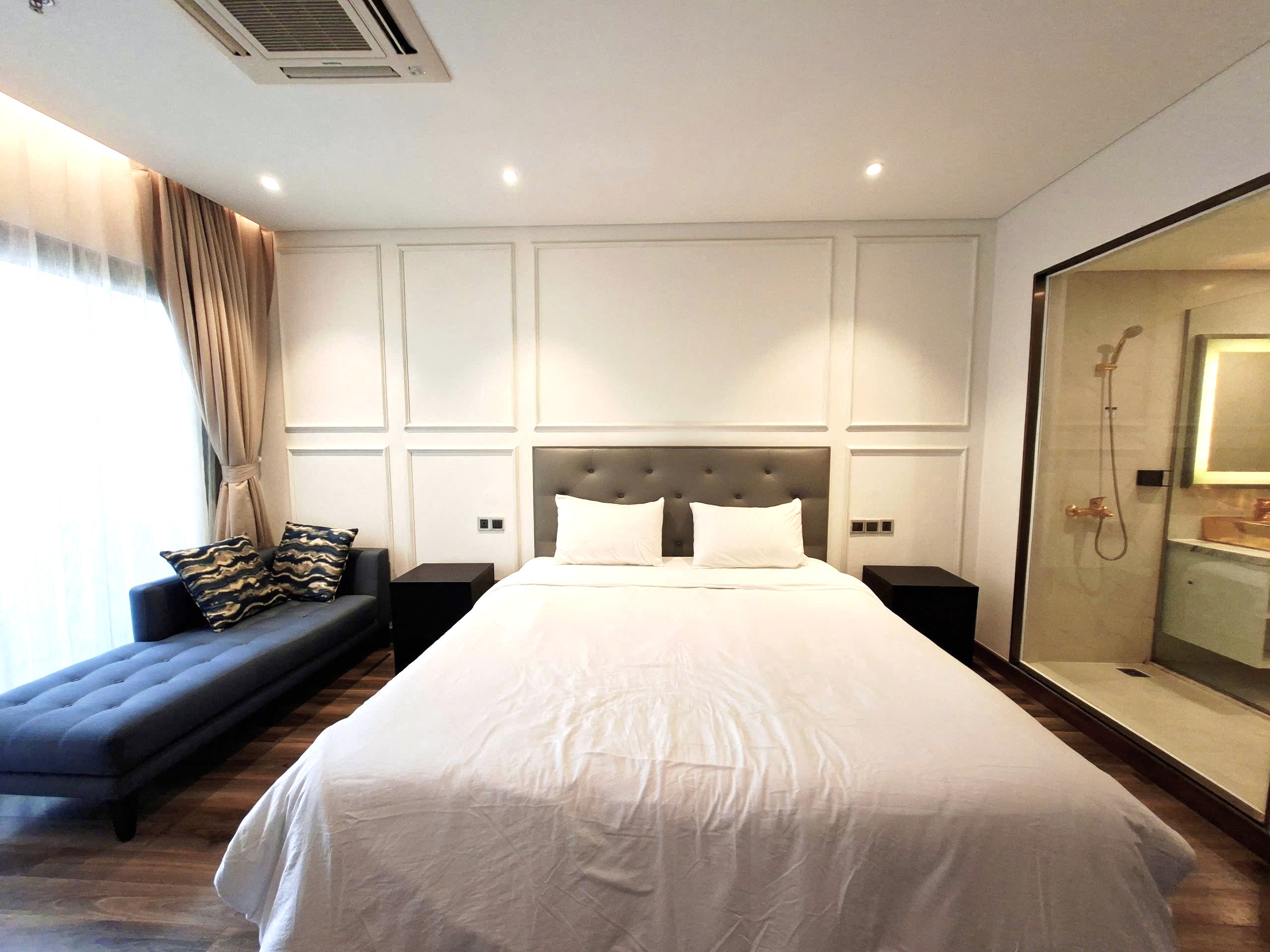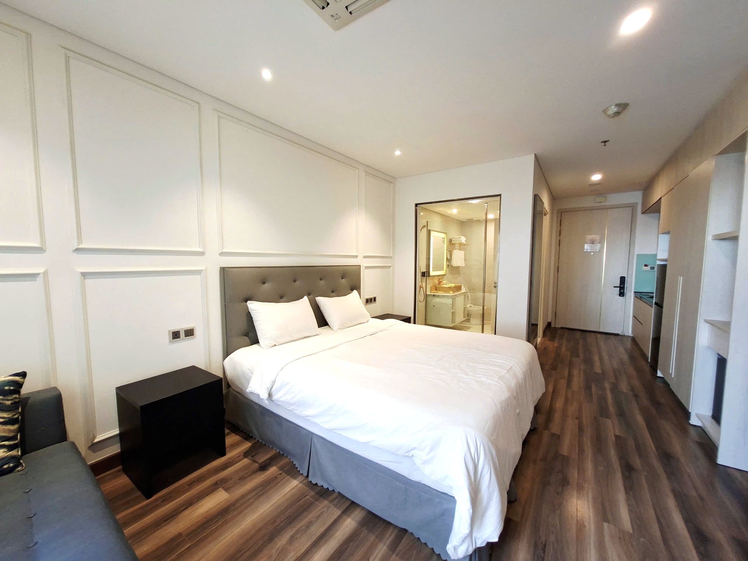 - 면적: 37m² - 월세: 10,000,000동/월 (수영장, 인터넷, 주차 포함) - 전기: 3,500동 / kWh - 수도: 100,000동 / 1인 - 관리비: 340,000동 / 월 - 특별 서비스: · 수영장 및 주차장 무료 이용 가능 · 청소 서비스: 20만동/회 · 뷔페: 23만동/성인 · 건물 2층에 카지노와 노래방이 있음 · 1층에는 헬스장이 있음 (개별 이용권 별도 등록) |