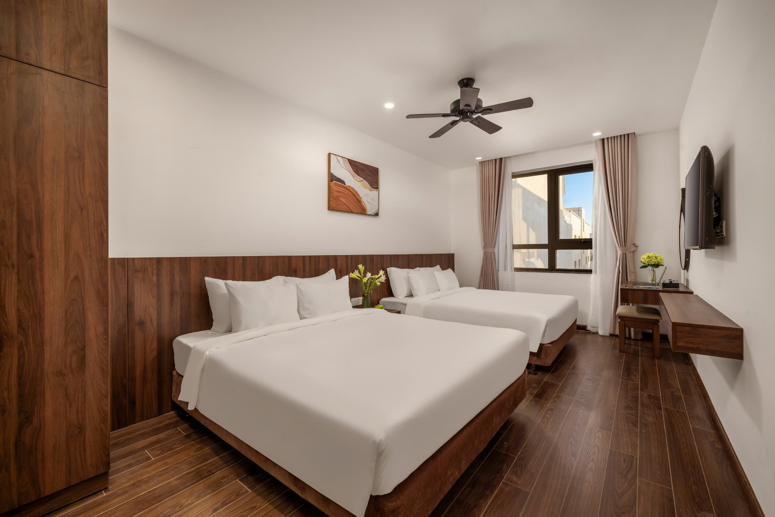 -위치: Bắc Mỹ Phú, Ngũ Hành Sơn, Đà Nẵng • 미케 비치(My Khe Beach) 도보 3분 • 다낭 사랑의 다리(Love Lock Bridge) 3.3km • 참 조각 박물관(Cham Sculpture Museum) 및 한강 다리(Han River Bridge) 각 4km -아파트 시설 및 서비스: • 모든 객실 시티 뷰 • 야외 수영장 및 테라스 이용 가능 • 24시간 프런트 데스크 운영 • 공항 픽업 서비스, 룸서비스 제공 • 전 구역 무료 Wi-Fi • 객실 내 시설: 에어컨, 위성 채널이 포함된 평면 TV, 냉장고, 전기 주전자, 무료 세면도구, 책상 • 전용 욕실(샤워기, 헤어드라이어) 완비 • 일부 객실은 발코니 포함 -월세: 19,000,000/월 -기타 비용: • 전기요금: 4,000동/kWh • 수도 + 쓰레기 + Wi-Fi: 200,000동 / 1인 / 월 • 청소비: 200,000동 / 월 (월 4회)