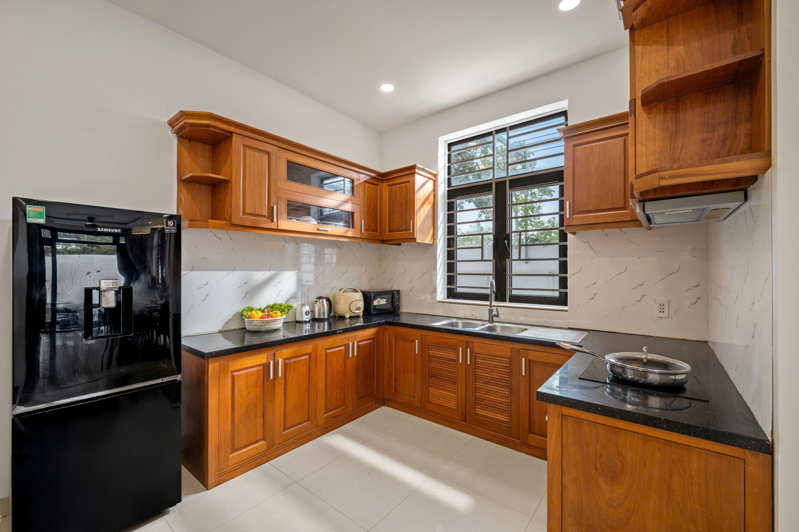 1. 다낭 5베드룸 빌라 (침대 6개) -주소: Anh Thơ, khu Nam Việt Á, Ngũ Hành Sơn, Đà Nẵng -빌라 구조: 3층, 침실 5개, 침대 7개, 욕실 5개 -빌라 편의시설 • 조리에 필요한 주방용품이 모두 갖춰진 풀옵션 주방, 대가족이 함께 식사할 수 있는 넓은 식탁 구비 • 현관 앞 전용 수영장 보유 • 미케(My Khe) 해변까지 차량으로 약 7~10분 거리, 주변 편의시설 위치 |