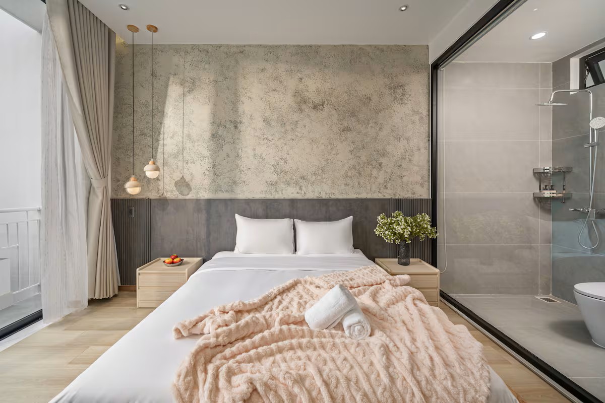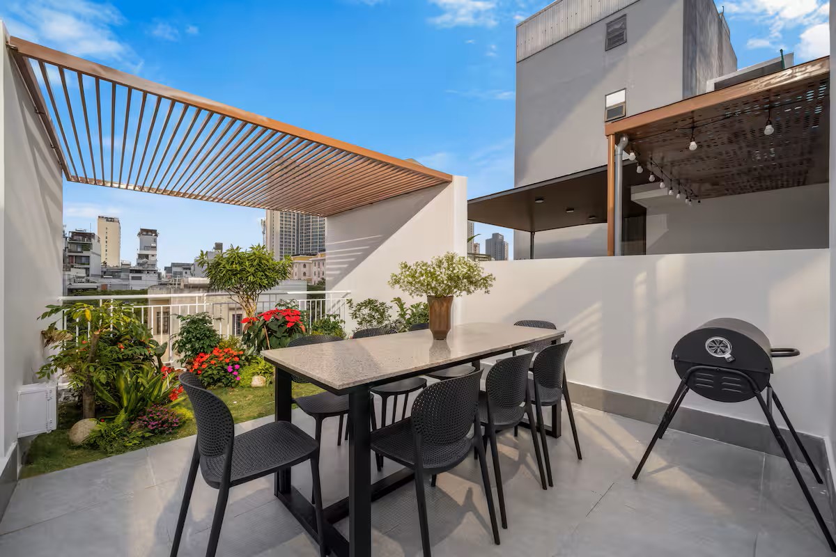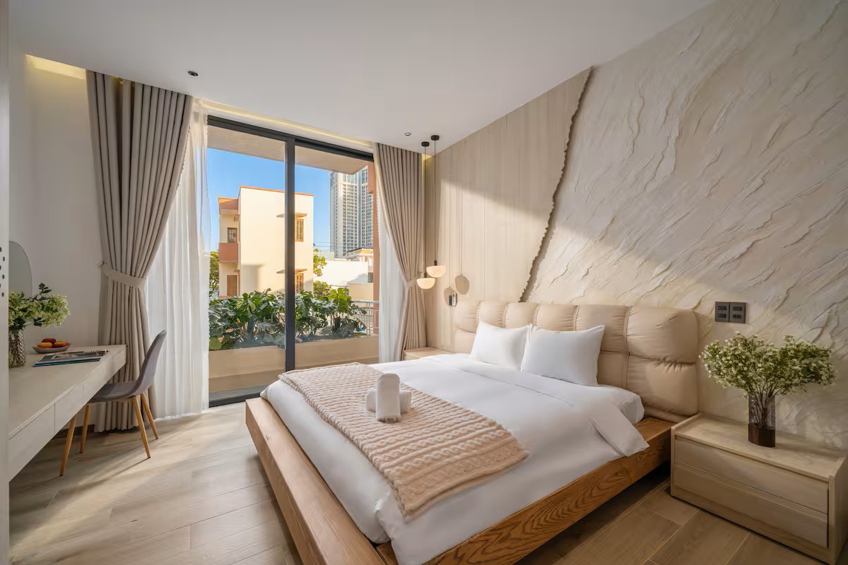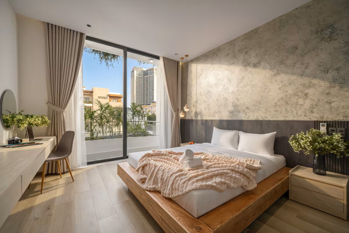 연립주택 다낭 손트라 감성 숙소 5BR – 루프탑 BBQ가 있는 프라이빗 NC Wabi-Sabi 빌라