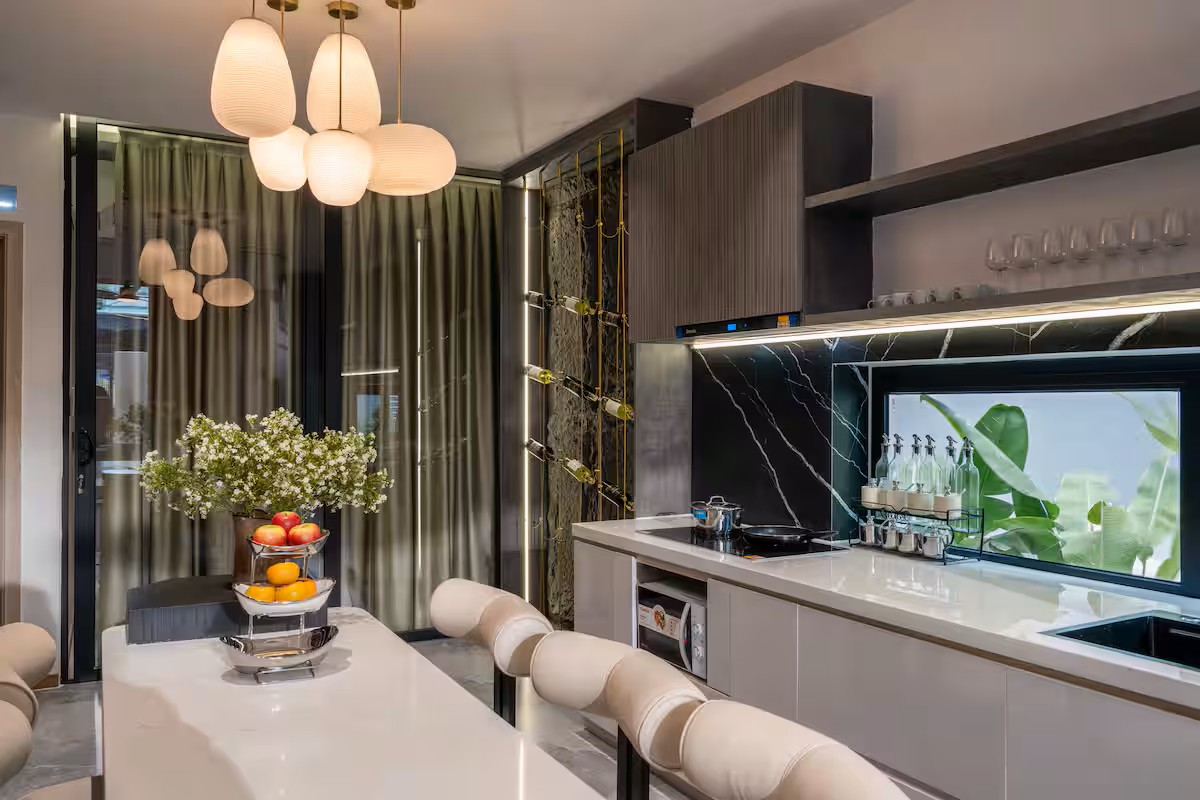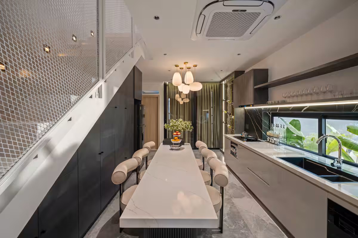 - 주소: Trần Đình Đàn, An Hải, Sơn Trà, Đà Nẵng - 빌라 구조: (계단 없는 단층 구조) + 1층: 거실 – 주방 – 침실 1개 + 2층: 침실 2개 – 욕실 2개 + 3층: 침실 2개 – 욕실 2개 + 4층: 루프탑 – BBQ 공간 - 빌라 편의시설: + 현대적인 조리도구가 완비된 주방 + 넓고 깔끔한 세탁 및 건조 공간 - 수용 인원: 최대 10명 - 청소 정책: + 수건 매일 무료 교체 + 4~5일 숙박 시: 3일째 아침 무료 청소 1회 제공 + 1주 이상 숙박 시: 주 2회 무료 청소 제공 - 요금: + 1박: 4,400,000동 |