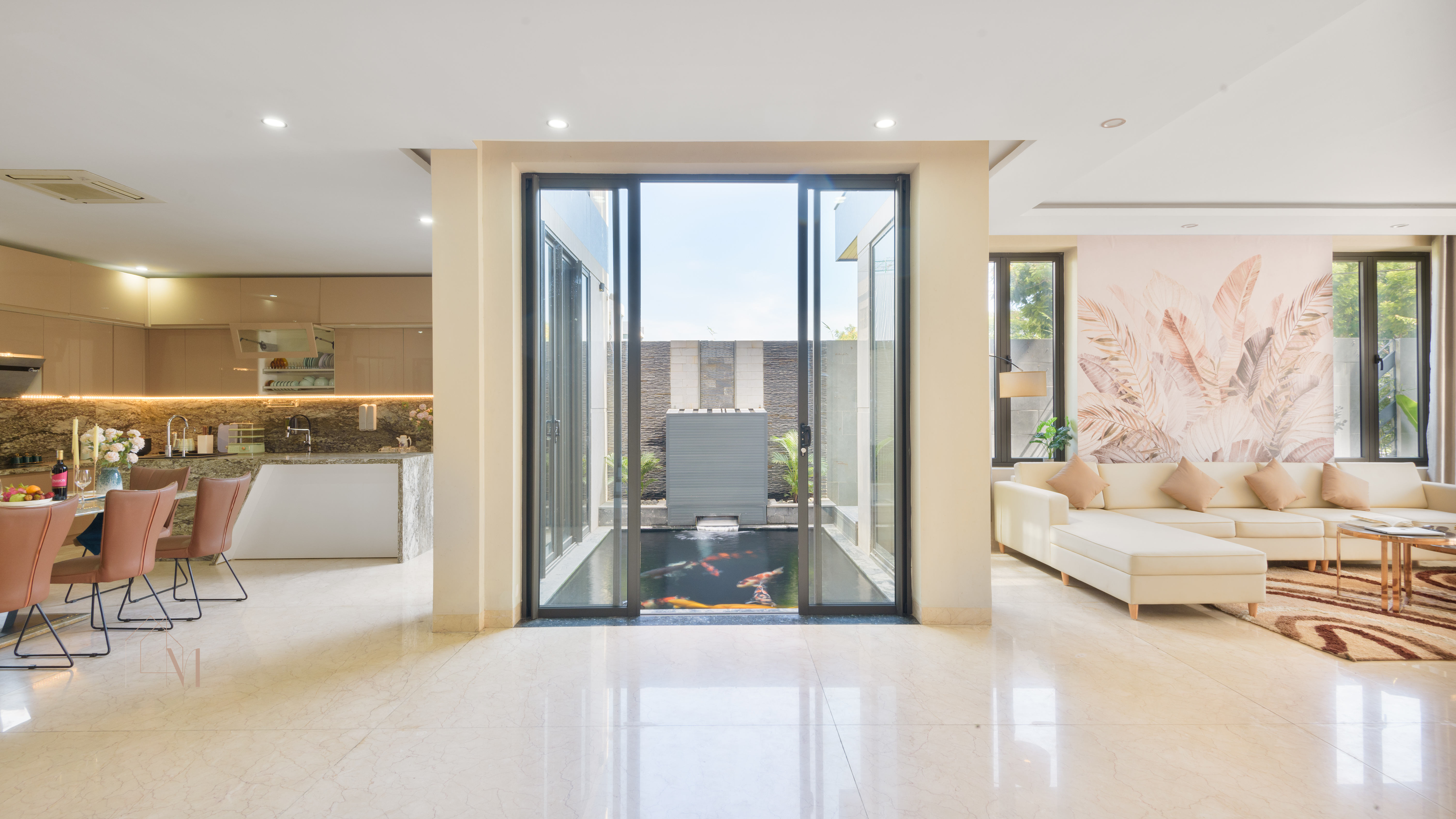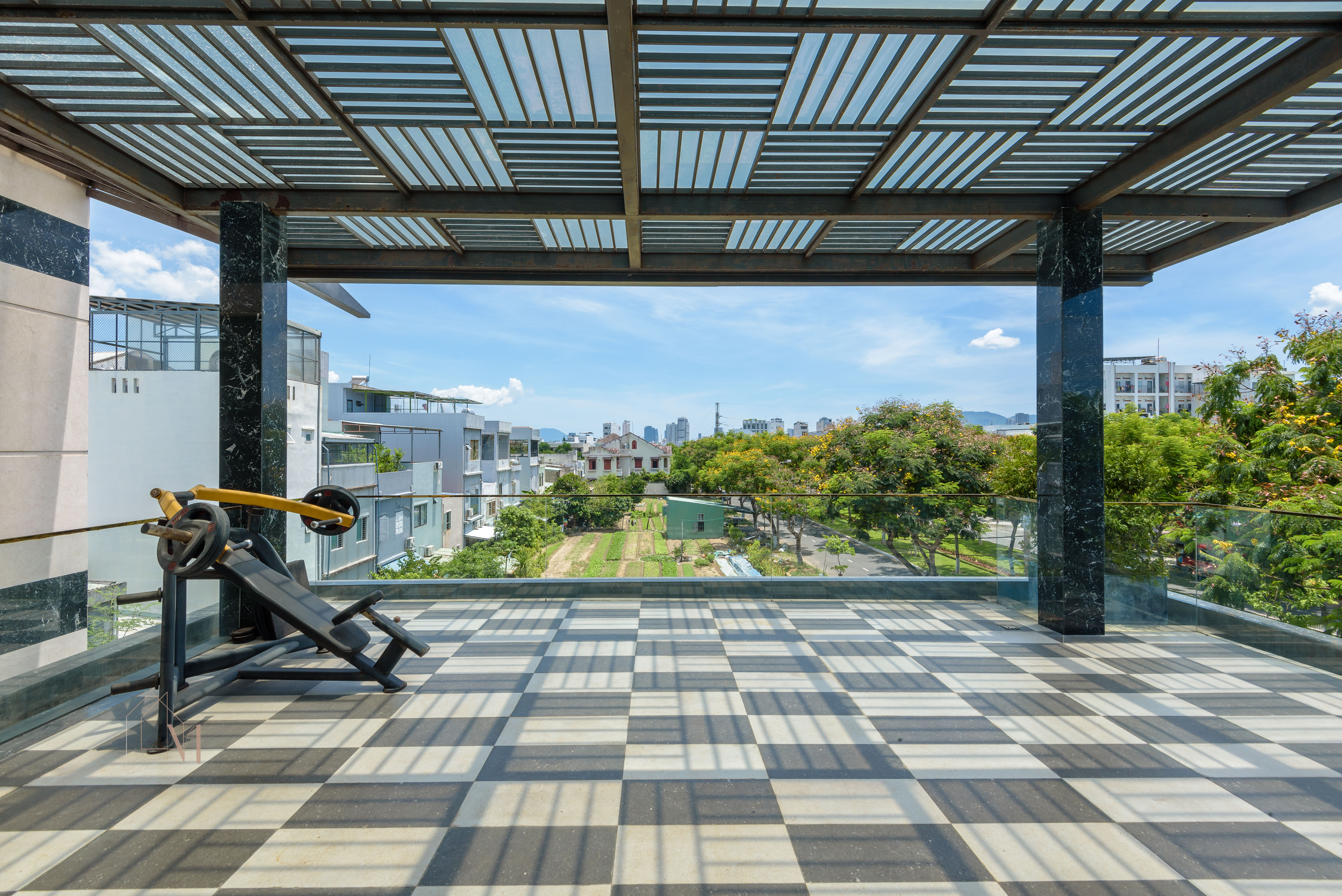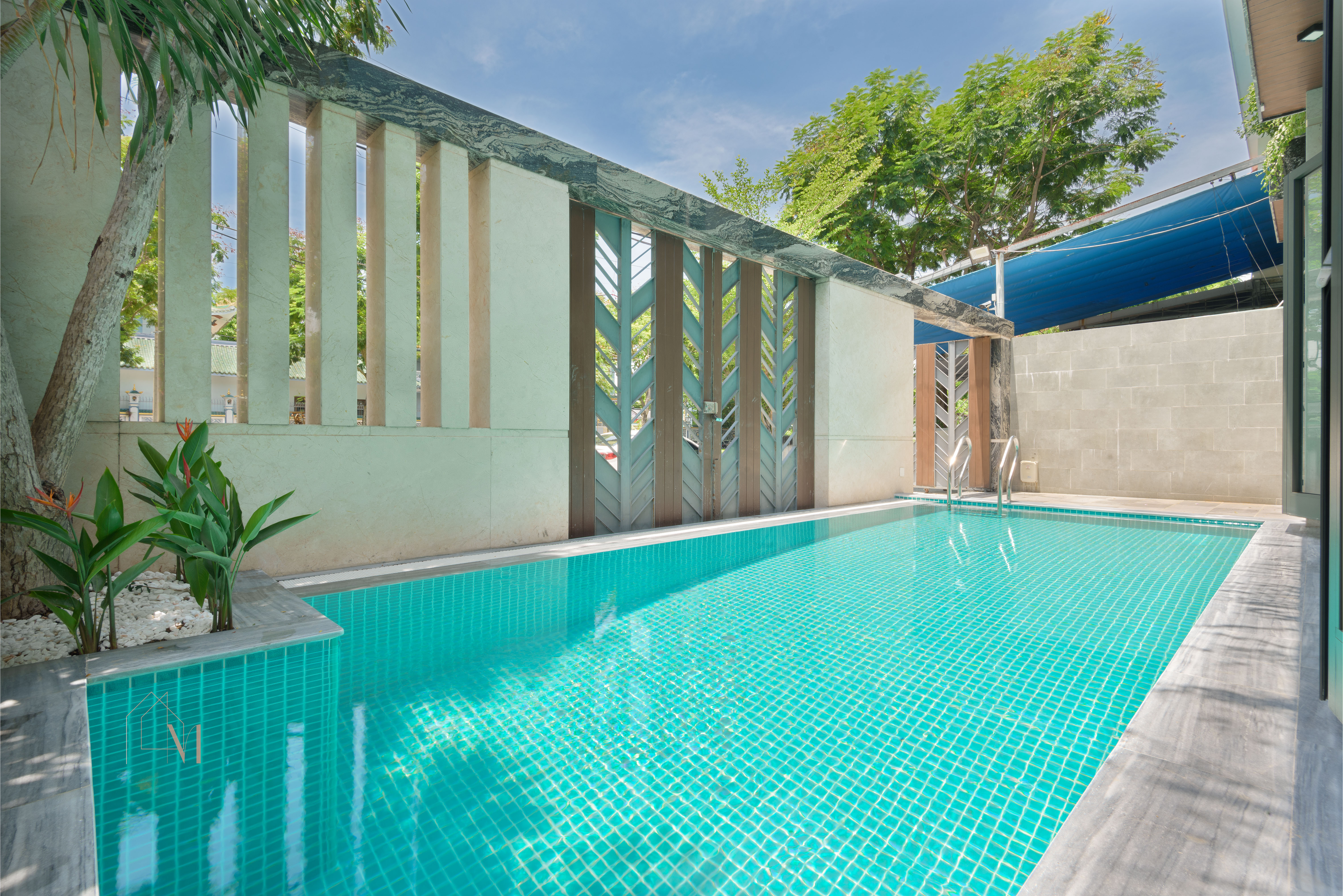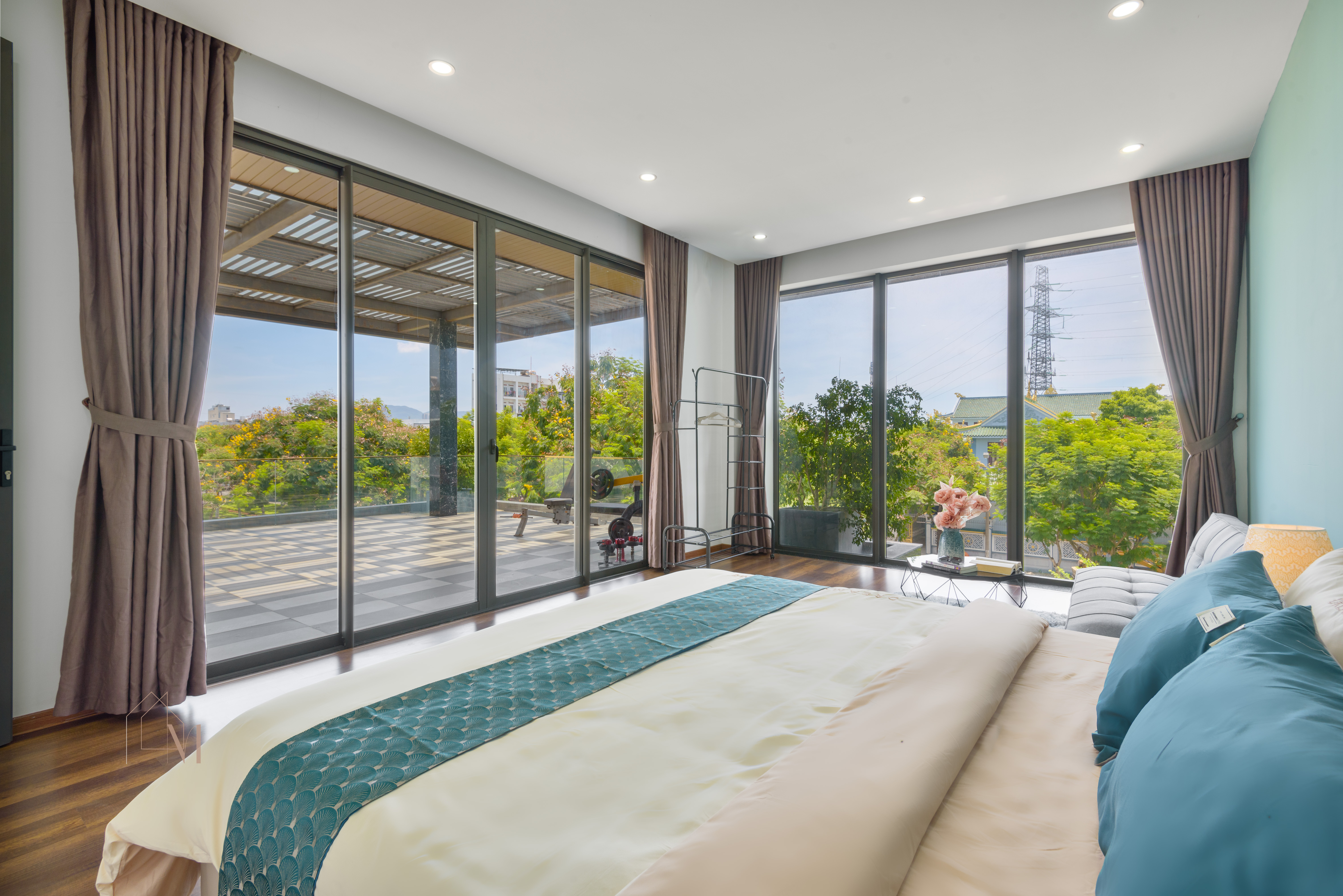 + 1층: 수영장 – 거실 – 주방 – 침실 1개 – 욕실 + 2층: 침실 3개 – 욕실 2개 – 발코니 + 3층: 침실 2개 – 욕실 – 세탁실 – 빨래 건조 공간 – 런닝머신 - 빌라 편의시설: