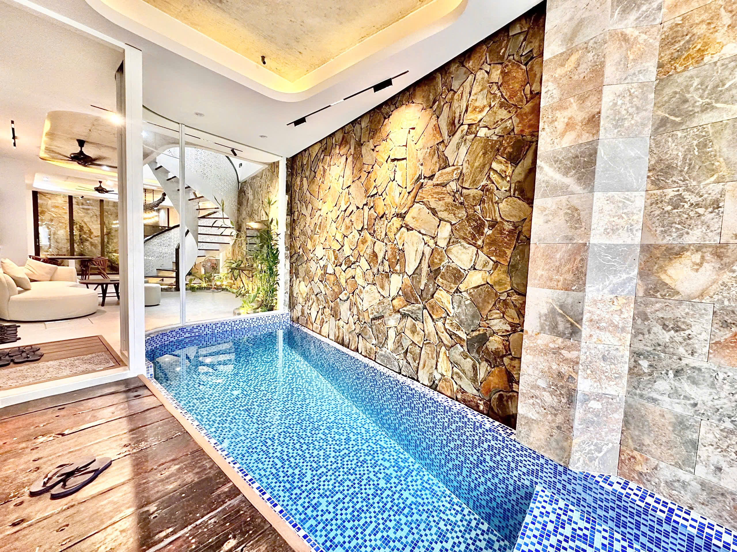 - 위치: Mỹ Khê 7, An Hải, Đà Nẵng - 총 면적: 100 m² - 침실: 4개 - 욕실: 5개 - 빌라 편의시설: + 프라이빗 수영장 + 각종 조리도구가 갖춰된 풀옵션 주방 + 야외 BBQ 공간 - 수용 인원: + 기준 8명 + 기준 인원 초과 시 1인당 200.000동 추가 요금 발생 - 요금: + 평일: 5.700.000 동/박 + 주말: 6.000.000 동/박 + 불꽃놀이 기간: 6.700.000 동/박 |